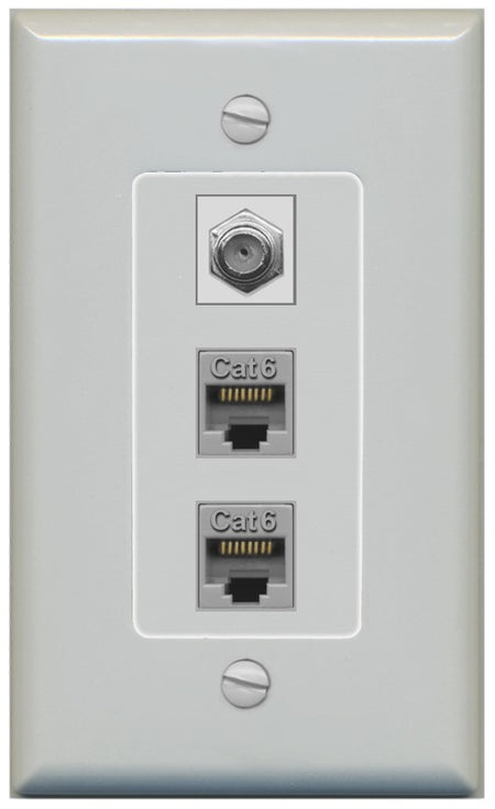 RiteAV - 2 Port Cat6 Ethernet 1 Coax Cable TV Wall Plate - 1 Gang Decorative [Gray/Gray]