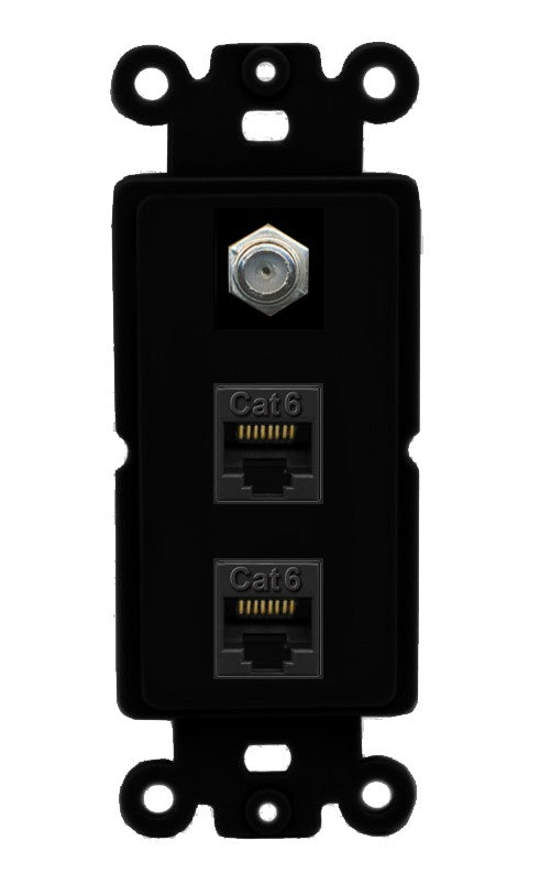 Increase quantity for RiteAV - 2 Port Cat6 Ethernet 1 Coax Cable TV Wall Plate - Rocker [Black/Black]