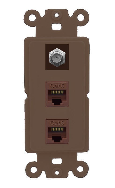 Increase quantity for RiteAV - 2 Port Cat6 Ethernet 1 Coax Cable TV Wall Plate - Rocker [Brown/Brown]