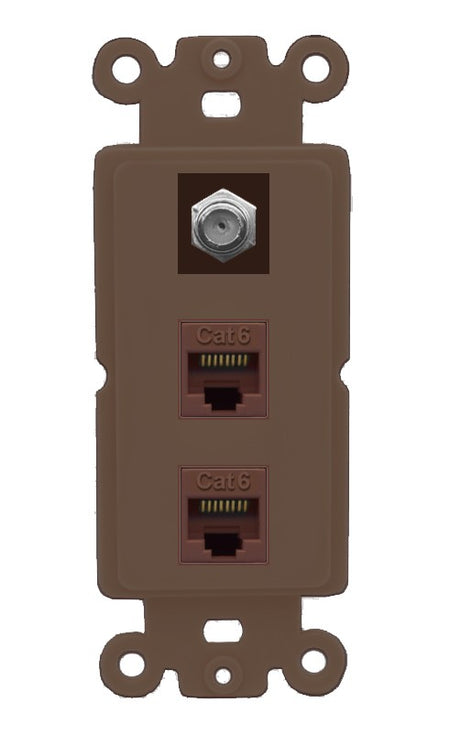 RiteAV - 2 Port Cat6 Ethernet 1 Coax Cable TV Wall Plate - Rocker [Brown/Brown]