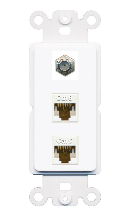 RiteAV - 2 Port Cat6 Ethernet 1 Coax Cable TV Wall Plate - Rocker [White]