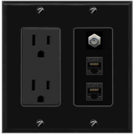 Increase quantity for RiteAV - 2 Port Cat6 Ethernet 1 Coax Cable TV Wall Plate - Outlet [Black/Black]