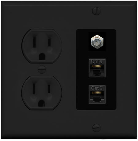 Increase quantity for RiteAV - 2 Port Cat6 Ethernet 1 Coax Cable TV Wall Plate - Round Outlet [Black/Black]