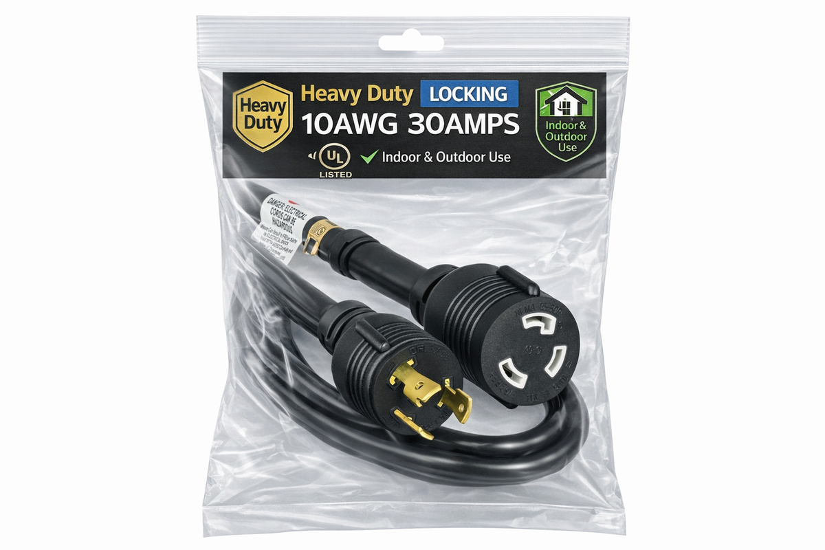 RiteAV Heavy Duty Locking Power Cord L5-30P/R 10AWG 30A 125V 3FT