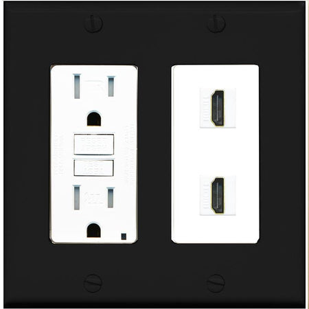 RiteAV HDMI Wall Plate 2 Port - GFCI [Black/White]