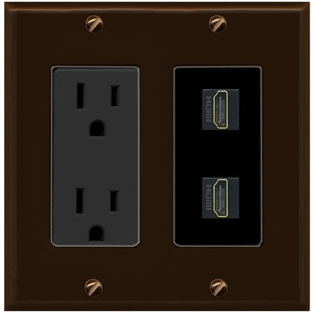 RiteAV HDMI Wall Plate 2 Port - Outlet [Brown/Black]