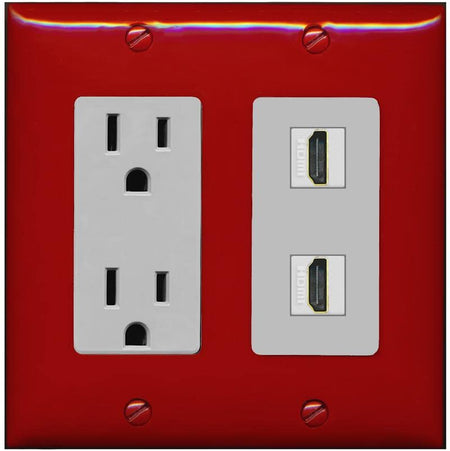 RiteAV HDMI Wall Plate 2 Port - Outlet [Red/Gray]