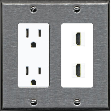 RiteAV HDMI Wall Plate 2 Port - Outlet [Stainless/White]