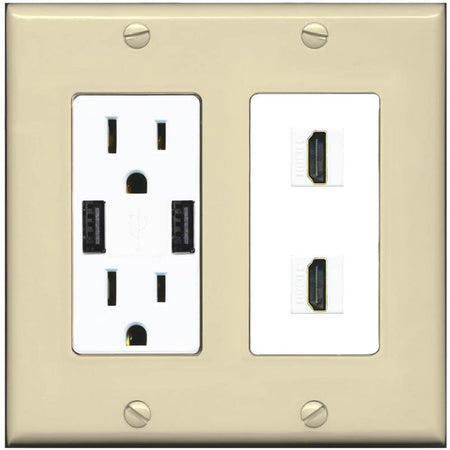 RiteAV HDMI Wall Plate 2 Port - USB Charger [Ivory/White]