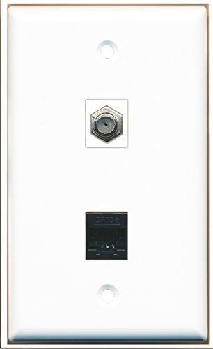 RiteAV - 1 Coax F Type and Cat5e Black Ethernet Port Wall Plate White