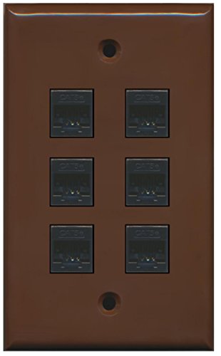 RiteAV 1 Gang 6 Port Cat5e Wall Plate - Brown