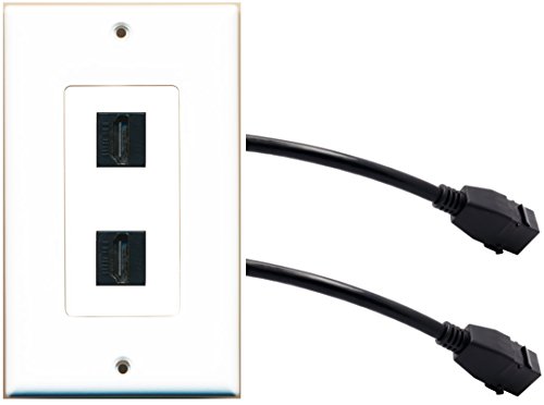 RiteAV (1 Gang Decorative) 2 HDMI Wall Plate w/ Pigtail Extension Cable White