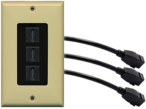 RiteAV (1 Gang Decorative) 3 HDMI Black Wall Plate w/ Pigtail Extension Cable Ivory (Black Insert)