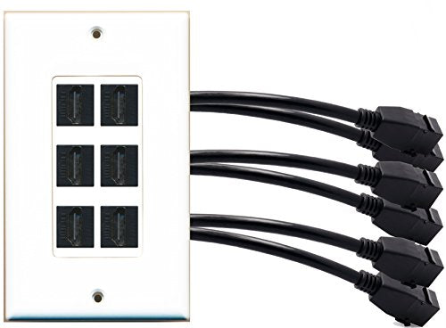 RiteAV (1 Gang Decorative) 6 HDMI Black Wall Plate w/ Pigtail Extension Cable