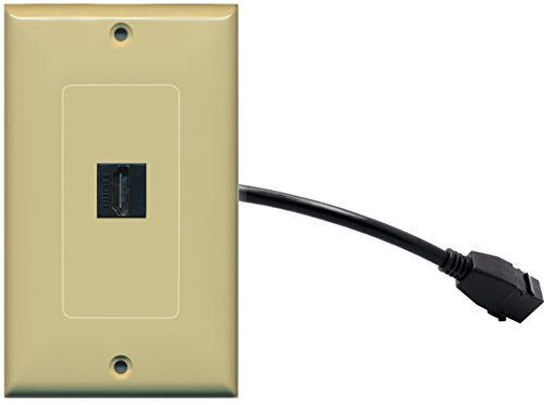 RiteAV (1 Gang Decorative) HDMI Wall Plate w/ Pigtail Extension Cable Ivory