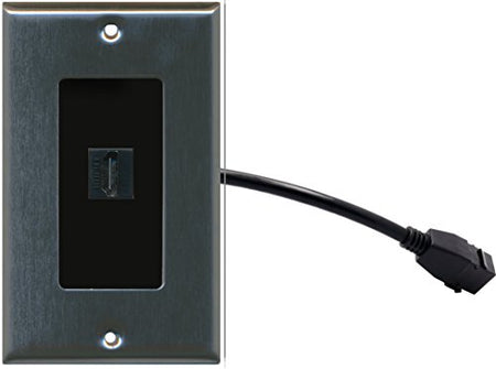 RiteAV (1 Gang Decorative) HDMI Wall Plate w/ Pigtail Extension Cable Stainless (Black Insert)