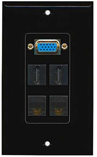 RiteAV (1 Gang Decorative) Svga 2 HDMI Black 2 Cat6 Black Wall Plate Black
