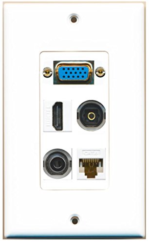 RiteAV (1 Gang Decorative) Svga HDMI Cat6 White 3.5mm Toslink Wall Plate White