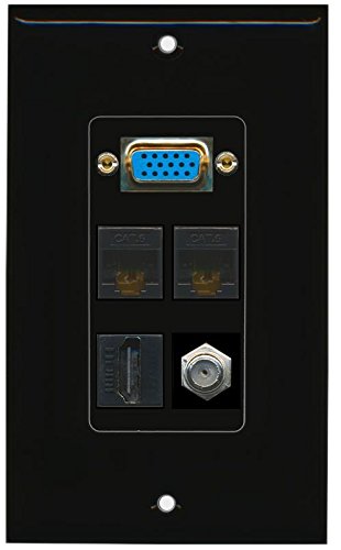 RiteAV (1 Gang Decorative) Svga HDMI Coax 2 Cat6 Ethernet Wall Plate Black