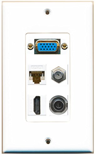 RiteAV (1 Gang Decorative) Svga HDMI Coax Cat6 White 3.5mm Wall Plate White