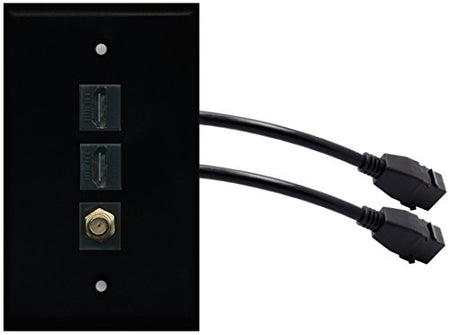 RiteAV (1 Gang Flat) 2 HDMI Black Coax Wall Plate w/ Pigtail Extension Cable Black