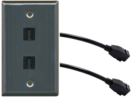 RiteAV (1 Gang Flat) 2 HDMI Wall Plate w/ Pigtail Extension Cable Stainless Steel