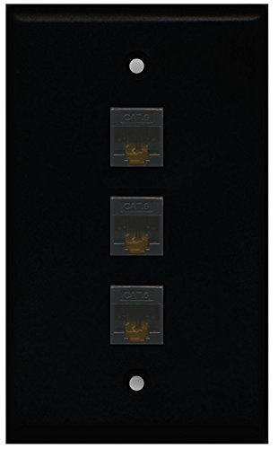 RiteAV (1 Gang Flat) 3 Cat6 Black Wall Plate Black