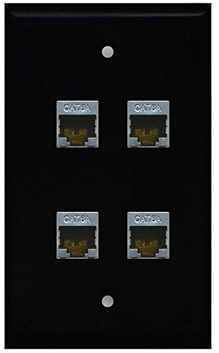 RiteAV - (1 Gang Flat) 4 Port Cat6a Jack Ethernet Wall Plate Black
