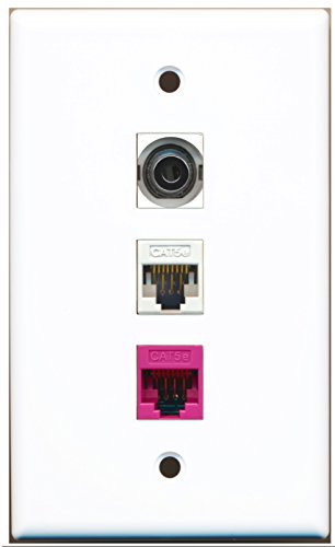 RiteAV - 1 Port 3.5mm 1 Cat5e Ethernet White 1 Cat5e Ethernet Pink Wall Plate