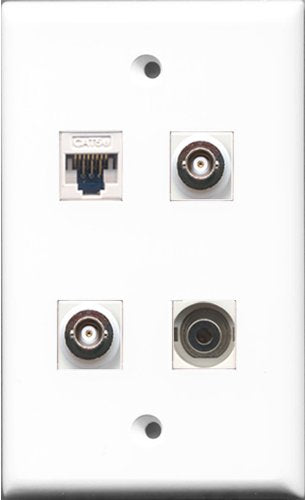 RiteAV - 1 Port 3.5mm 2 Port BNC and 1 Port Cat5e Ethernet White Wall Plate