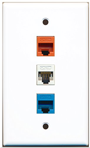RiteAV - 1 Port Cat5e Ethernet White 1 Cat5e Ethernet Blue 1 Cat5e Ethernet Orange Wall Plate
