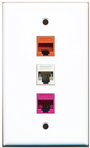RiteAV - 1 Port Cat5e Ethernet White 1 Cat5e Ethernet Pink 1 Cat5e Ethernet Orange Wall Plate