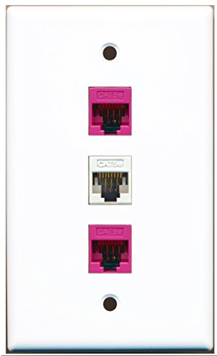 RiteAV - 1 Port Cat5e Ethernet White 2 Port Cat5e Ethernet Pink Wall Plate