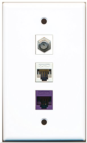 RiteAV - 1 Port Coax Cable TV- F-Type 1 Cat5e Ethernet White 1 Cat5e Ethernet Purple Wall Plate