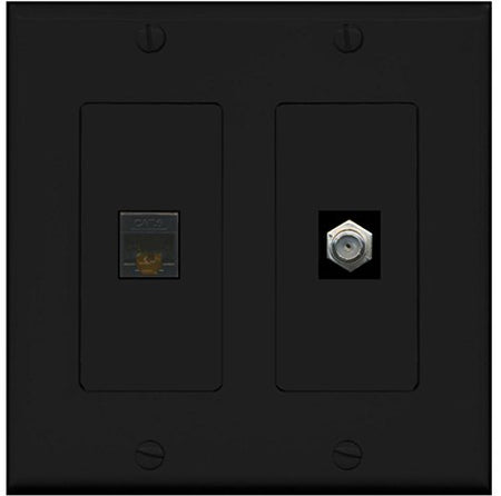RiteAV - 1 Port Coax Cable TV- F-Type 1 Port Cat6 Ethernet Dual Gang Wall Plate - Black