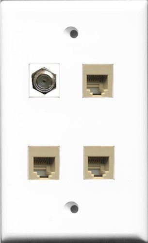 RiteAV 1 Port Coax Cable TV- F-Type 3 Port Phone RJ11 RJ12 Beige Wall Plate