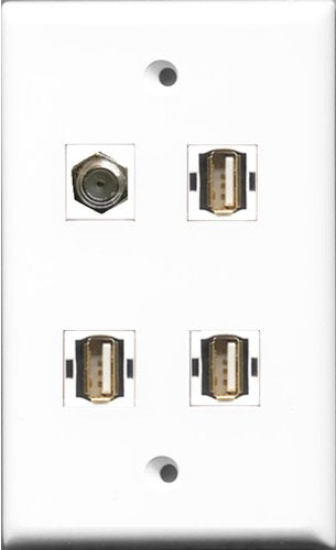 RiteAV 1 Port Coax Cable TV- F-Type 3 Port USB A-A Wall Plate