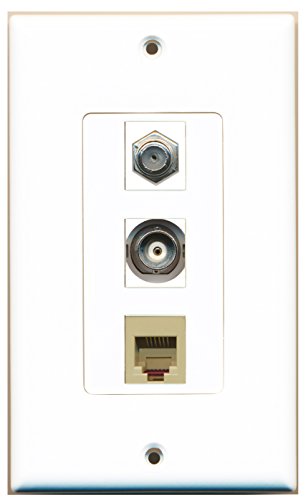 RiteAV - 1 Port Coax Cable TV- F-Type and 1 Port Phone RJ11 RJ12 Beige and 1 Port BNC Decorative Wall Plate Decorative