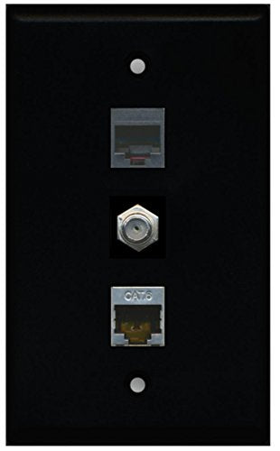 RiteAV - 1 Port Coax Cable TV- F-Type Phone RJ11 RJ12 and Shielded Cat6 Ethernet Wall Plate - Black