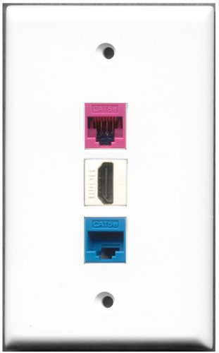 RiteAV - 1 Port HDMI 1 Cat5e Ethernet Blue 1 Cat5e Ethernet Pink Wall Plate