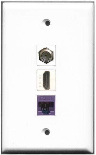RiteAV - 1 Port HDMI 1 Coax Cable TV- F-Type 1 Cat5e Ethernet Purple Wall Plate