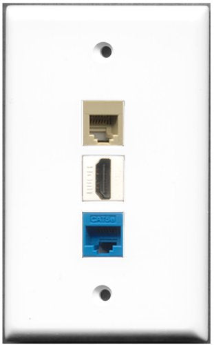 RiteAV - 1 Port HDMI 1 Phone RJ11 RJ12 Beige 1 Cat5e Ethernet Blue Wall Plate