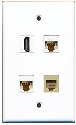 RiteAV - 1 Port HDMI 1 Port Phone RJ11 RJ12 Beige 2 Port Cat6 Ethernet White Wall Plate