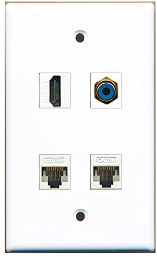 RiteAV - 1 Port HDMI 1 Port RCA Blue 2 Port Cat5e Ethernet White Wall Plate