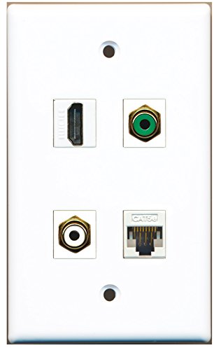 RiteAV - 1 Port HDMI 1 Port RCA White 1 Port RCA Green 1 Port Cat5e Ethernet White Wall Plate