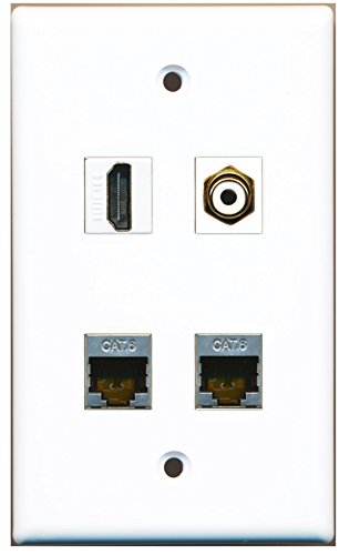 RiteAV - 1 Port HDMI 1 Port RCA White 2 Port Shielded Cat6 Ethernet Wall Plate
