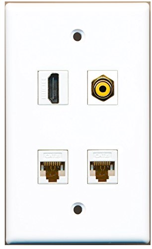 RiteAV - 1 Port HDMI 1 Port RCA Yellow 2 Port Cat6 Ethernet White Wall Plate