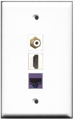 RiteAV - 1 Port HDMI 1 RCA White 1 Cat5e Ethernet Purple Wall Plate