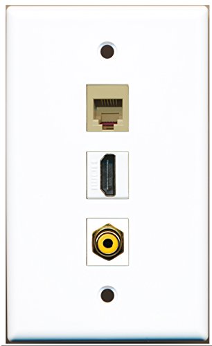 RiteAV - 1 Port HDMI 1 RCA Yellow 1 Phone RJ11 RJ12 Beige Wall Plate