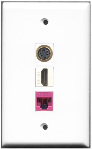 RiteAV - 1 Port HDMI 1 S-Video 1 Cat5e Ethernet Pink Wall Plate